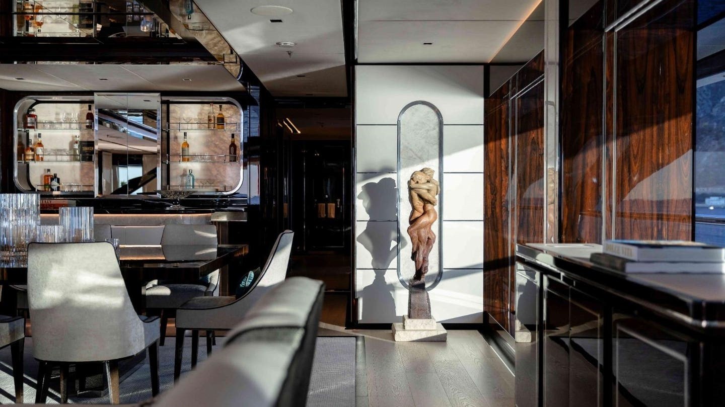 Namun, keindahan visual tersebut tidak berdiri sendiri. Di balik tampilannya yang artistik, superyacht ini telah dipersenjatai dengan teknologi mutakhir untuk memastikan kenyamanan puncak di setiap perjalanan. Sistem HVAC modern menjamin kestabilan suhu di seluruh ruangan, sementara isolasi suara berkualitas tinggi membuat pengalaman berlayar tetap tenang meski mesin bekerja penuh. Tak kalah penting, teknologi hidrolik canggih memungkinkan berbagai ruang pada kapal berubah fungsi secara mulus seperti terrace yang dapat dilipat ke bawah, platform yang dapat ditarik masuk atau keluar, hingga bukaan sisi kapal yang menciptakan hubungan alami dengan laut.