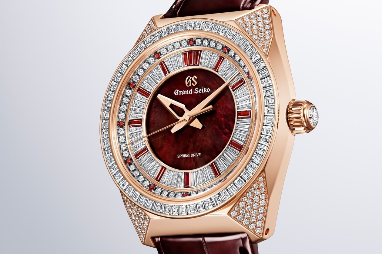 Sebagai penghormatan yang kuat dan penuh emosi terhadap simbol ikonik mereka, Grand Seiko menghadirkan SBGD228 “Red Lion”, sebuah karya yang menangkap semangat liar sekaligus aura megah dari singa yang menjadi lambang brand ini. Jam tangan ini tampil mencolok dengan case berdiameter 44,5 mm yang dibuat dari emas mawar 18 karat, lalu dihiasi secara teliti dengan lebih dari 250 berlian serta batu garnet Mozambik berwarna merah pekat. Dial-nya menggunakan material mother-of-pearl berwarna merah anggur yang kaya, menciptakan latar yang mewah namun tetap elegan.