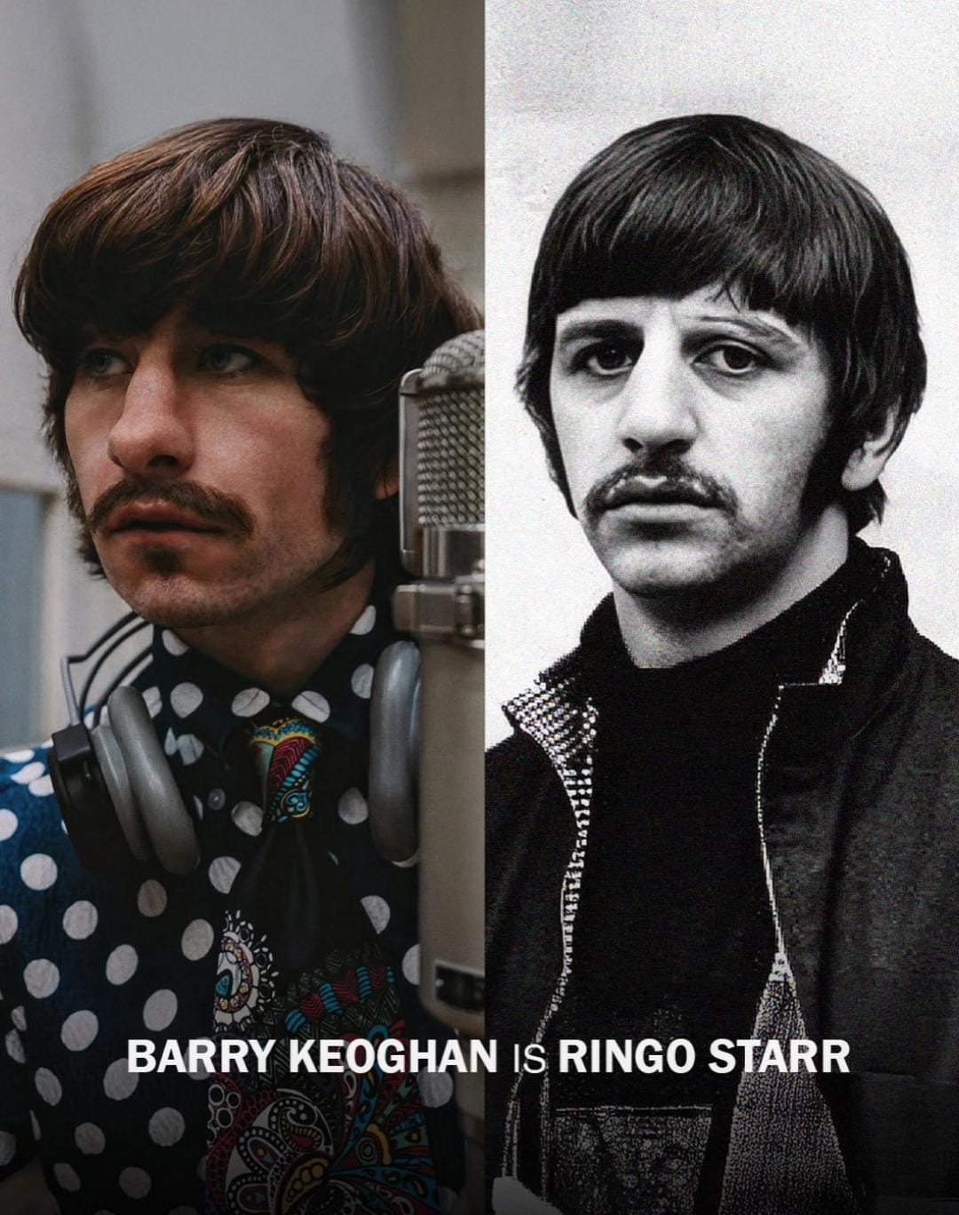 Barry Keoghan, yang memerankan Ringo Starr, tampil dengan rambut dan kumis bergaya 60-an, menangkap sisi jenaka sekaligus energi musikal unik yang selalu dibawa Ringo sebagai drummer The Beatles. Di sisi lain, Joseph Quinn, yang melejit lewat serial Stranger Things, terlihat sebagai George Harrison dengan rambut panjang dan ekspresi serius yang mencerminkan karakter gitaris legendaris tersebut. Secara keseluruhan, foto-foto ini menunjukkan bagaimana para aktor seolah “menghilang” ke dalam peran mereka melalui detail kostum, riasan, serta pendekatan visual yang autentik, memperkuat kesan bahwa produksi film ini benar-benar berkomitmen untuk menghidupkan kembali era Beatlemania dengan akurasi dan dedikasi tinggi.